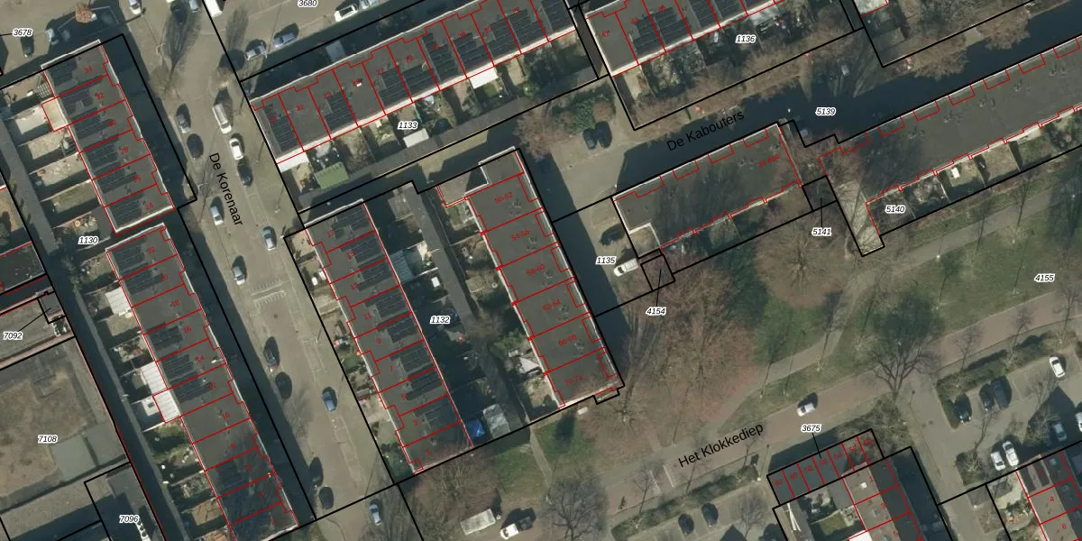Het perceel waarop De Kabouters 58 staat heeft een oppervlakte van 2267 m². Dit is een zeer groot perceel. De perceeloppervlakte wordt geregistreerd door het Kadaster. Gedetailleerde informatie over de maten van dit perceel kunt u vinden in het rapport Kadastrale kaart met maatvoering van De Kabouters 58.