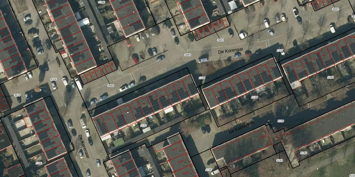 Het perceel waarop De Korenaar 37 staat heeft een oppervlakte van 1622 m². Dit is een zeer groot perceel. De perceeloppervlakte wordt geregistreerd door het Kadaster. Gedetailleerde informatie over de maten van dit perceel kunt u vinden in het rapport Kadastrale kaart met maatvoering van De Korenaar 37.