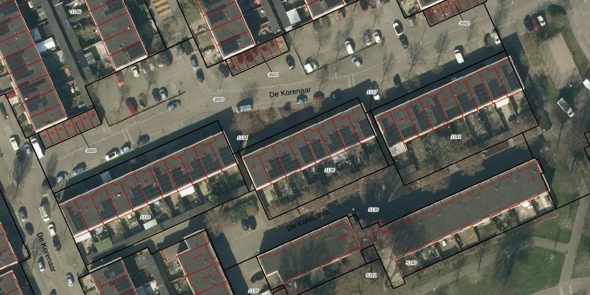 Het perceel waarop De Korenaar 47 staat heeft een oppervlakte van 1133 m². Dit is een zeer groot perceel. De perceeloppervlakte wordt geregistreerd door het Kadaster. Gedetailleerde informatie over de maten van dit perceel kunt u vinden in het rapport Kadastrale kaart met maatvoering van De Korenaar 47.