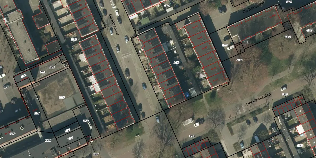 Het perceel waarop De Korenaar 7 staat heeft een oppervlakte van 2267 m². Dit is een zeer groot perceel. De perceeloppervlakte wordt geregistreerd door het Kadaster. Gedetailleerde informatie over de maten van dit perceel kunt u vinden in het rapport Kadastrale kaart met maatvoering van De Korenaar 7.