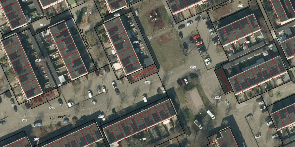 De Korenaar 72 is gelegen op kadastraal perceel HTG00O3682. Deze kadastrale aanduiding is uniek en wordt gebruikt door het Kadaster om eigendomsrechten en andere zakelijke rechten vast te leggen. Het perceel maakt onderdeel uit van de kadastrale gemeente 's-Hertogenbosch.