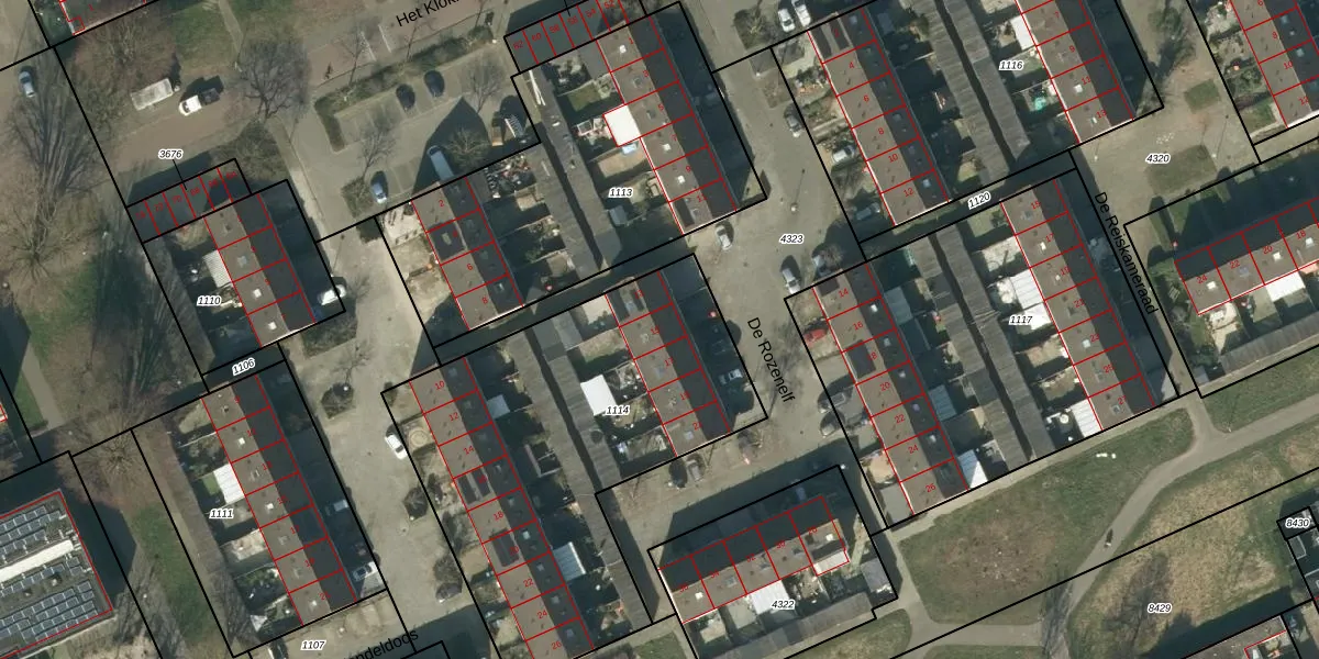 Het perceel waarop De Rozenelf 15 staat heeft een oppervlakte van 1917 m². Dit is een zeer groot perceel. De perceeloppervlakte wordt geregistreerd door het Kadaster. Gedetailleerde informatie over de maten van dit perceel kunt u vinden in het rapport Kadastrale kaart met maatvoering van De Rozenelf 15.