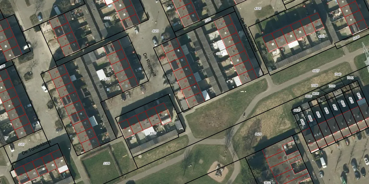 Het perceel waarop De Rozenelf 24 staat heeft een oppervlakte van 1845 m². Dit is een zeer groot perceel. De perceeloppervlakte wordt geregistreerd door het Kadaster. Gedetailleerde informatie over de maten van dit perceel kunt u vinden in het rapport Kadastrale kaart met maatvoering van De Rozenelf 24.