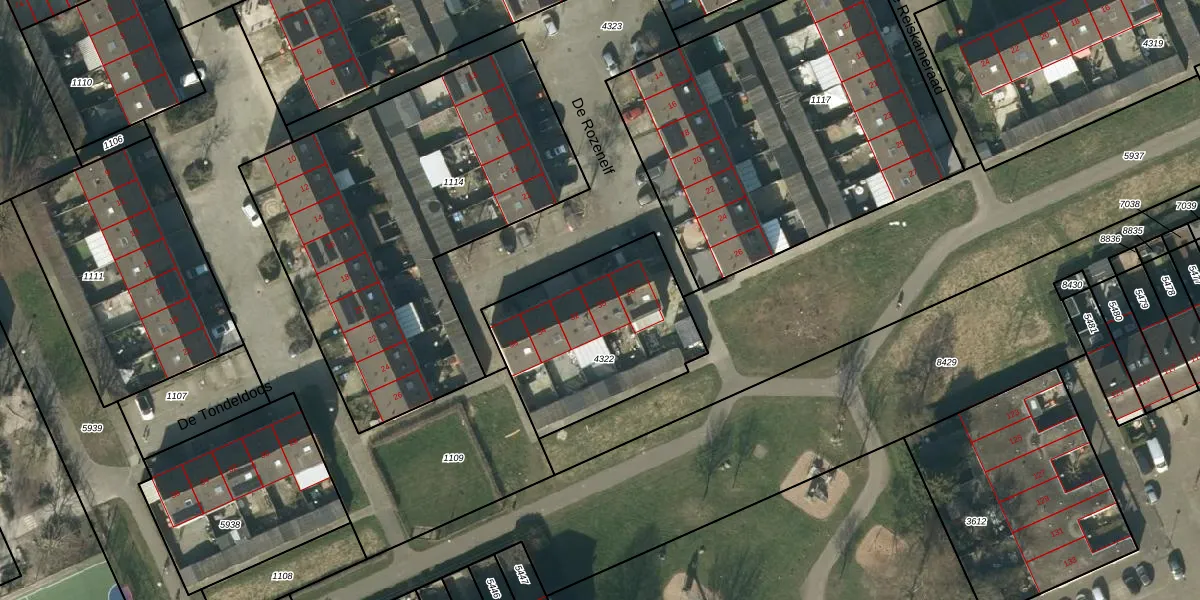Het perceel waarop De Rozenelf 30 staat heeft een oppervlakte van 737 m². Dit is een groot perceel. De perceeloppervlakte wordt geregistreerd door het Kadaster. Gedetailleerde informatie over de maten van dit perceel kunt u vinden in het rapport Kadastrale kaart met maatvoering van De Rozenelf 30.
