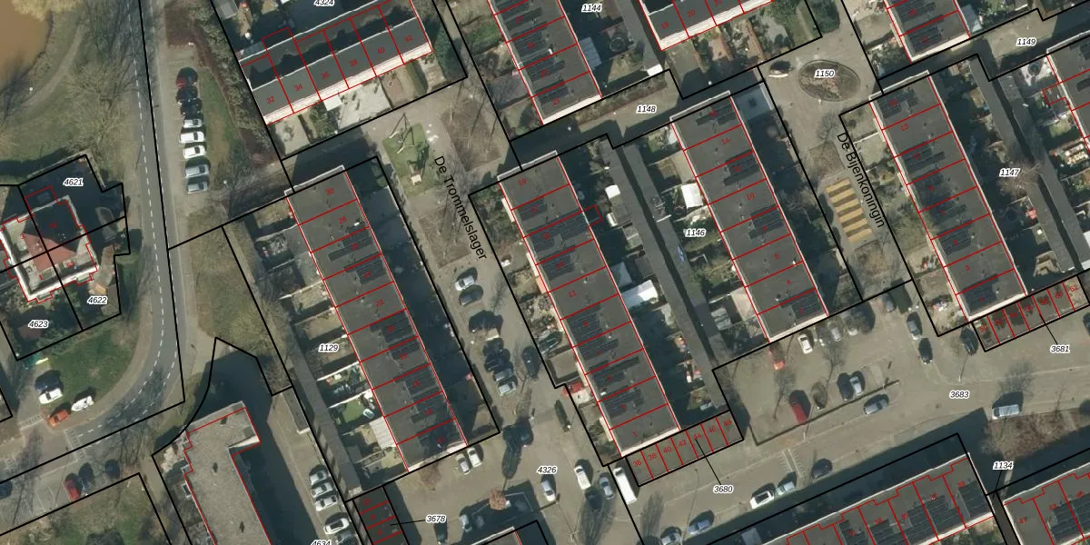 Het perceel waarop De Trommelslager 13 staat heeft een oppervlakte van 2858 m². Dit is een zeer groot perceel. De perceeloppervlakte wordt geregistreerd door het Kadaster. Gedetailleerde informatie over de maten van dit perceel kunt u vinden in het rapport Kadastrale kaart met maatvoering van De Trommelslager 13.