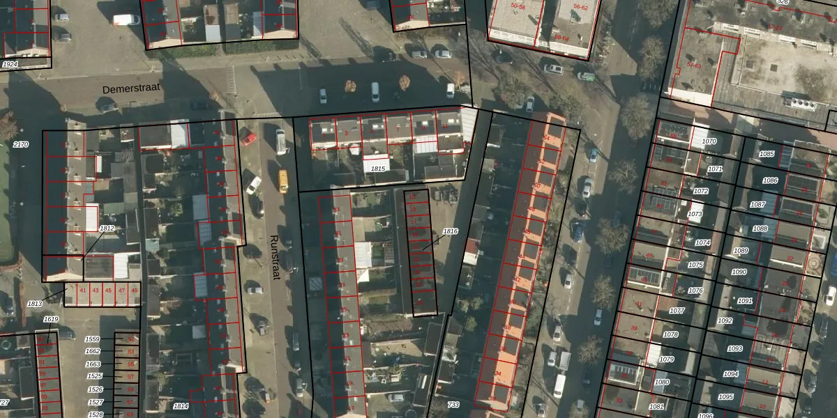 Het perceel waarop Demerstraat 15 staat heeft een oppervlakte van 175 m². Dit is een middelgroot perceel. De perceeloppervlakte wordt geregistreerd door het Kadaster. Gedetailleerde informatie over de maten van dit perceel kunt u vinden in het rapport Kadastrale kaart met maatvoering van Demerstraat 15.