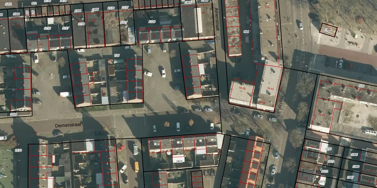 Het perceel waarop Demerstraat 48 staat heeft een oppervlakte van 3260 m². Dit is een zeer groot perceel. De perceeloppervlakte wordt geregistreerd door het Kadaster. Gedetailleerde informatie over de maten van dit perceel kunt u vinden in het rapport Kadastrale kaart met maatvoering van Demerstraat 48.