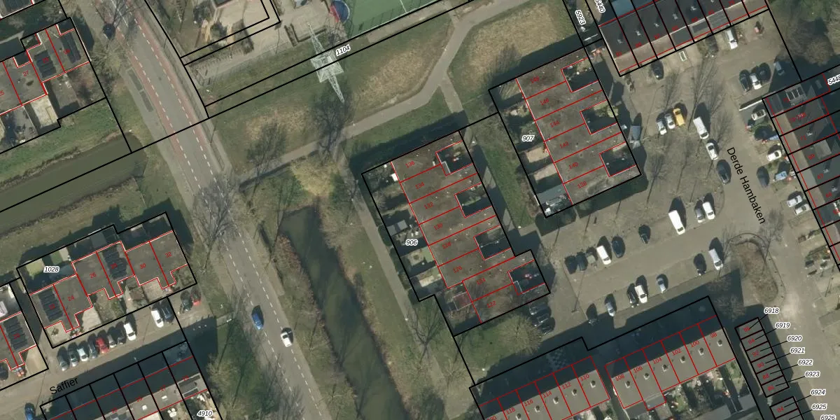Het perceel waarop Derde Hambaken 132 staat heeft een oppervlakte van 1122 m². Dit is een zeer groot perceel. De perceeloppervlakte wordt geregistreerd door het Kadaster. Gedetailleerde informatie over de maten van dit perceel kunt u vinden in het rapport Kadastrale kaart met maatvoering van Derde Hambaken 132.