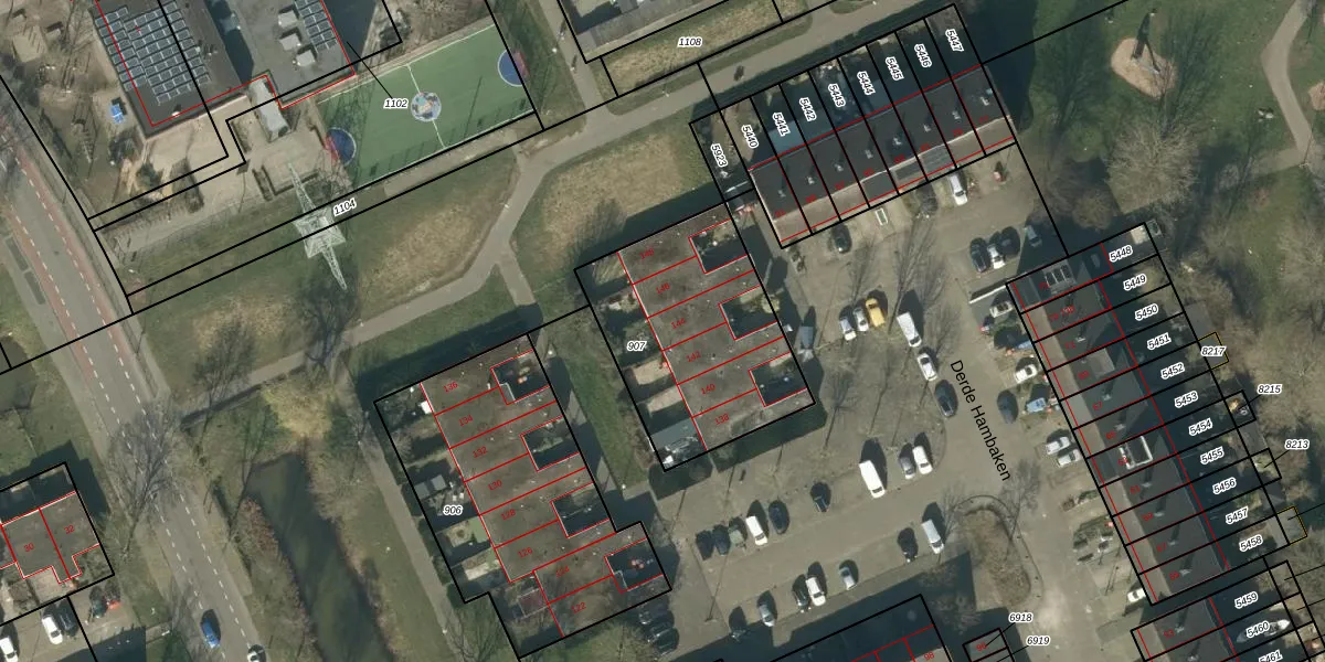 Het perceel waarop Derde Hambaken 144 staat heeft een oppervlakte van 830 m². Dit is een groot perceel. De perceeloppervlakte wordt geregistreerd door het Kadaster. Gedetailleerde informatie over de maten van dit perceel kunt u vinden in het rapport Kadastrale kaart met maatvoering van Derde Hambaken 144.