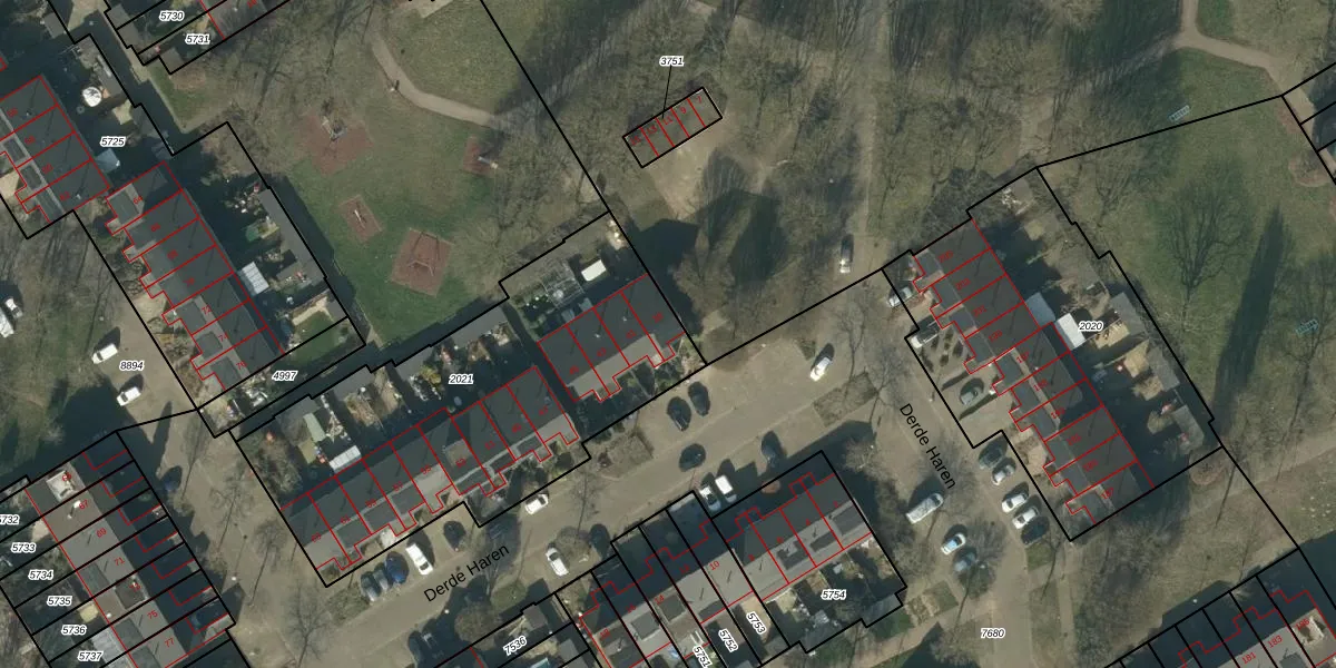 Het perceel waarop Derde Haren 39 staat heeft een oppervlakte van 1730 m². Dit is een zeer groot perceel. De perceeloppervlakte wordt geregistreerd door het Kadaster. Gedetailleerde informatie over de maten van dit perceel kunt u vinden in het rapport Kadastrale kaart met maatvoering van Derde Haren 39.