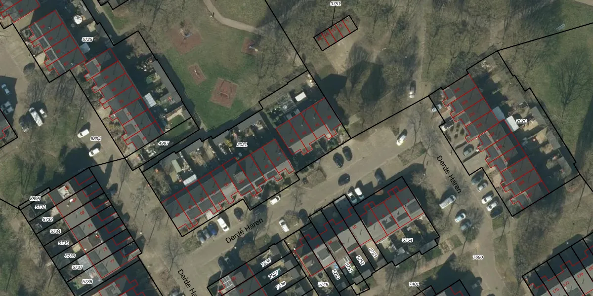 Het perceel waarop Derde Haren 45 staat heeft een oppervlakte van 1730 m². Dit is een zeer groot perceel. De perceeloppervlakte wordt geregistreerd door het Kadaster. Gedetailleerde informatie over de maten van dit perceel kunt u vinden in het rapport Kadastrale kaart met maatvoering van Derde Haren 45.