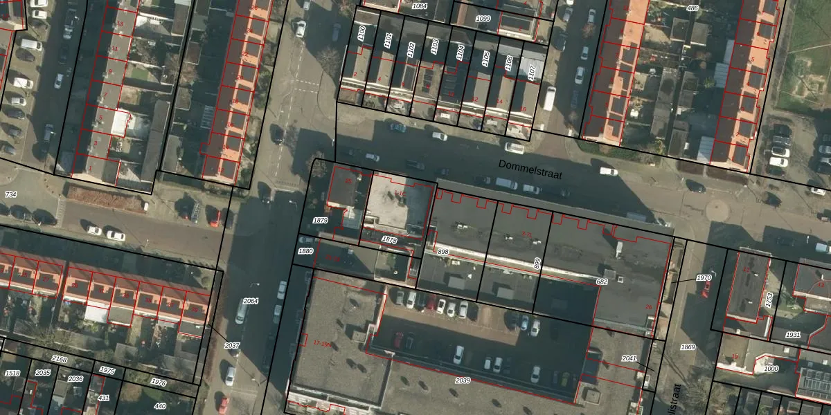Het perceel waarop Dommelstraat 1-B staat heeft een oppervlakte van 292 m². Dit is een middelgroot perceel. De perceeloppervlakte wordt geregistreerd door het Kadaster. Gedetailleerde informatie over de maten van dit perceel kunt u vinden in het rapport Kadastrale kaart met maatvoering van Dommelstraat 1-B.