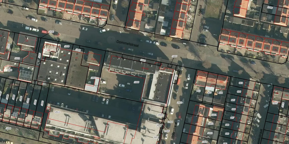 Dommelstraat 185 is gelegen op kadastraal perceel HTG00D1666. Deze kadastrale aanduiding is uniek en wordt gebruikt door het Kadaster om eigendomsrechten en andere zakelijke rechten vast te leggen. Het perceel maakt onderdeel uit van de kadastrale gemeente 's-Hertogenbosch.