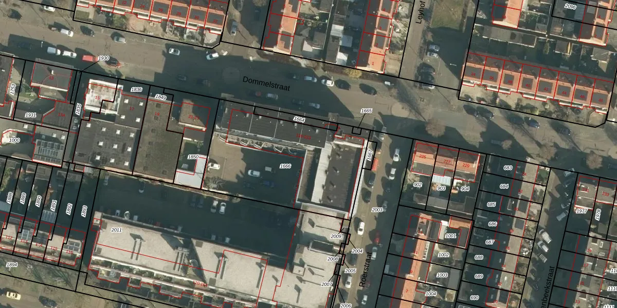 Het perceel waarop Dommelstraat 217 staat heeft een oppervlakte van 1417 m². Dit is een zeer groot perceel. De perceeloppervlakte wordt geregistreerd door het Kadaster. Gedetailleerde informatie over de maten van dit perceel kunt u vinden in het rapport Kadastrale kaart met maatvoering van Dommelstraat 217.
