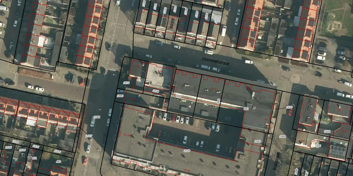 Het perceel waarop Dommelstraat 5-L staat heeft een oppervlakte van 375 m². Dit is een groot perceel. De perceeloppervlakte wordt geregistreerd door het Kadaster. Gedetailleerde informatie over de maten van dit perceel kunt u vinden in het rapport Kadastrale kaart met maatvoering van Dommelstraat 5-L.