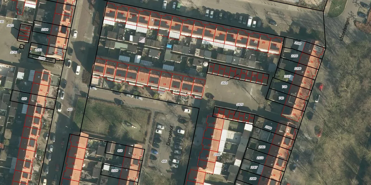 Het perceel waarop Dongehof 21 staat heeft een oppervlakte van 8221 m². Dit is een zeer groot perceel. De perceeloppervlakte wordt geregistreerd door het Kadaster. Gedetailleerde informatie over de maten van dit perceel kunt u vinden in het rapport Kadastrale kaart met maatvoering van Dongehof 21.