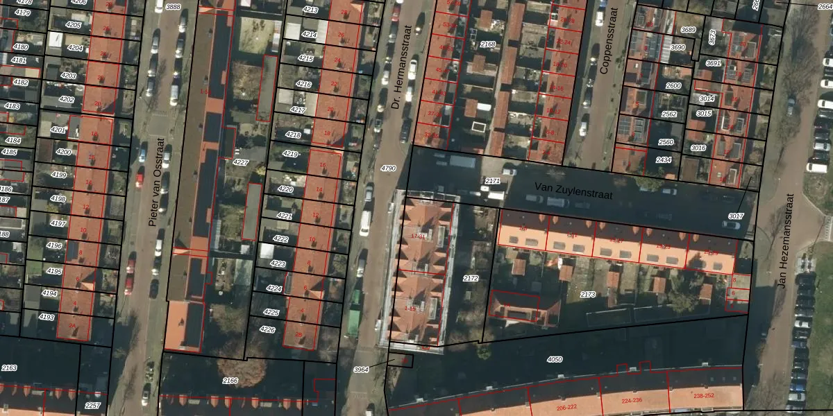Dr. Hermansstraat 25 is gelegen op kadastraal perceel HTG00C2172. Deze kadastrale aanduiding is uniek en wordt gebruikt door het Kadaster om eigendomsrechten en andere zakelijke rechten vast te leggen. Het perceel maakt onderdeel uit van de kadastrale gemeente 's-Hertogenbosch.