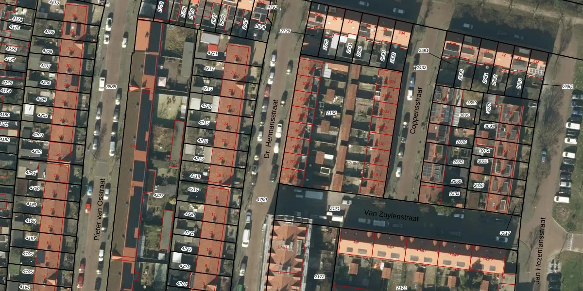 Dr. Hermansstraat 41 is gelegen op kadastraal perceel HTG00C2168. Deze kadastrale aanduiding is uniek en wordt gebruikt door het Kadaster om eigendomsrechten en andere zakelijke rechten vast te leggen. Het perceel maakt onderdeel uit van de kadastrale gemeente 's-Hertogenbosch.