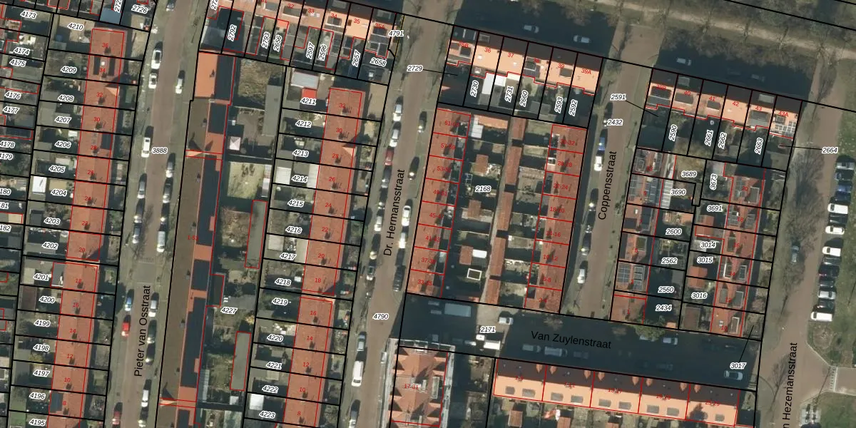 Dr. Hermansstraat 45 is gelegen op kadastraal perceel HTG00C2168. Deze kadastrale aanduiding is uniek en wordt gebruikt door het Kadaster om eigendomsrechten en andere zakelijke rechten vast te leggen. Het perceel maakt onderdeel uit van de kadastrale gemeente 's-Hertogenbosch.