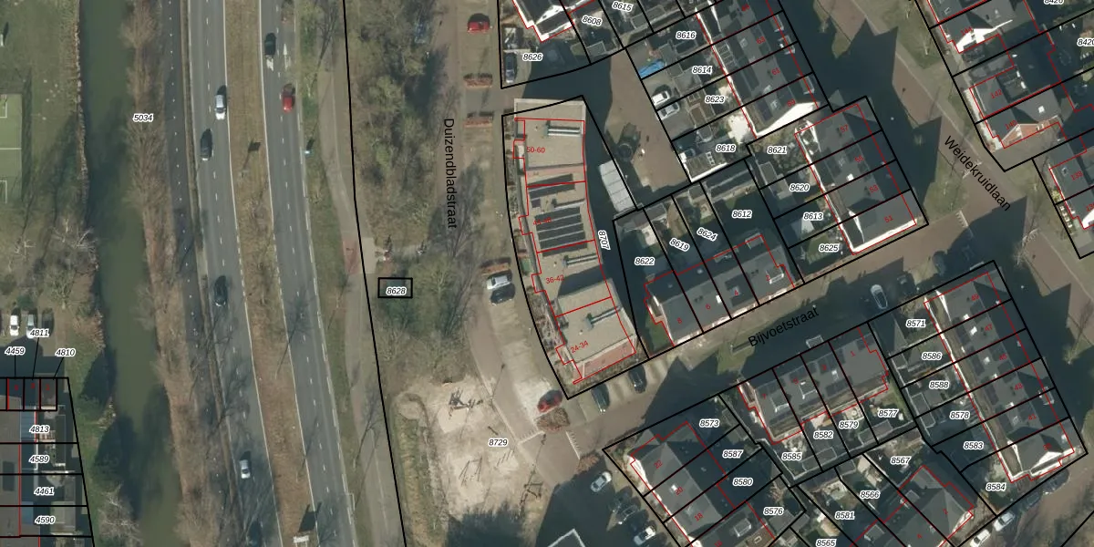 Het perceel waarop Duizendbladstraat 38 staat heeft een oppervlakte van 955 m². Dit is een groot perceel. De perceeloppervlakte wordt geregistreerd door het Kadaster. Gedetailleerde informatie over de maten van dit perceel kunt u vinden in het rapport Kadastrale kaart met maatvoering van Duizendbladstraat 38.