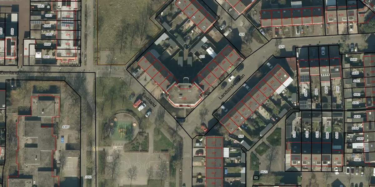Het perceel waarop Eemland 11 staat heeft een oppervlakte van 2293 m². Dit is een zeer groot perceel. De perceeloppervlakte wordt geregistreerd door het Kadaster. Gedetailleerde informatie over de maten van dit perceel kunt u vinden in het rapport Kadastrale kaart met maatvoering van Eemland 11.