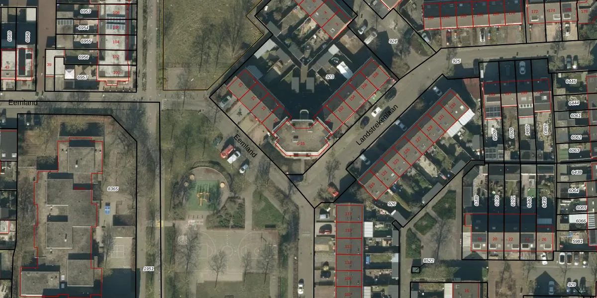 Het perceel waarop Eemland 5 staat heeft een oppervlakte van 2293 m². Dit is een zeer groot perceel. De perceeloppervlakte wordt geregistreerd door het Kadaster. Gedetailleerde informatie over de maten van dit perceel kunt u vinden in het rapport Kadastrale kaart met maatvoering van Eemland 5.