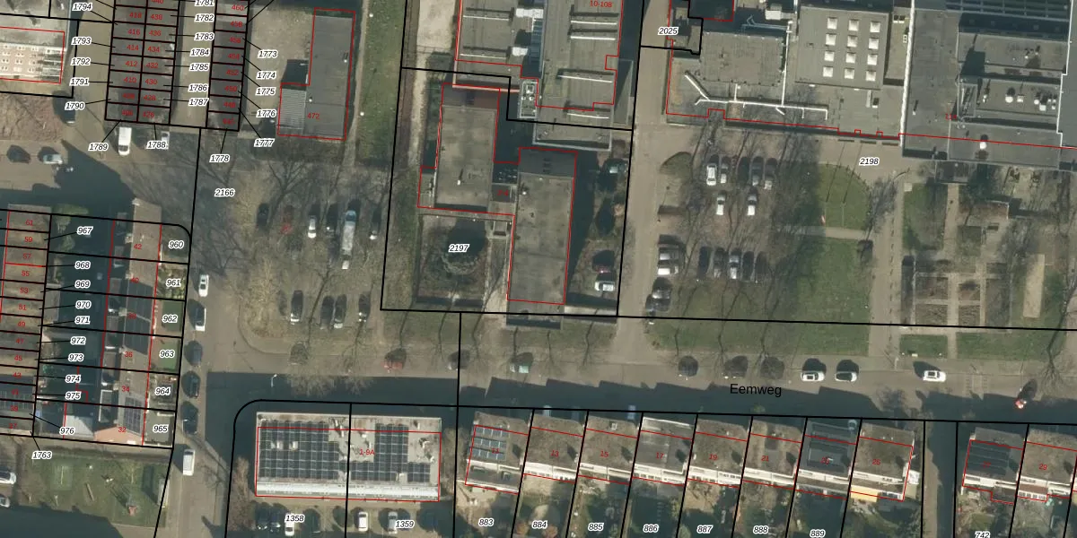 Het perceel waarop Eemweg 2-C staat heeft een oppervlakte van 1745 m². Dit is een zeer groot perceel. De perceeloppervlakte wordt geregistreerd door het Kadaster. Gedetailleerde informatie over de maten van dit perceel kunt u vinden in het rapport Kadastrale kaart met maatvoering van Eemweg 2-C.
