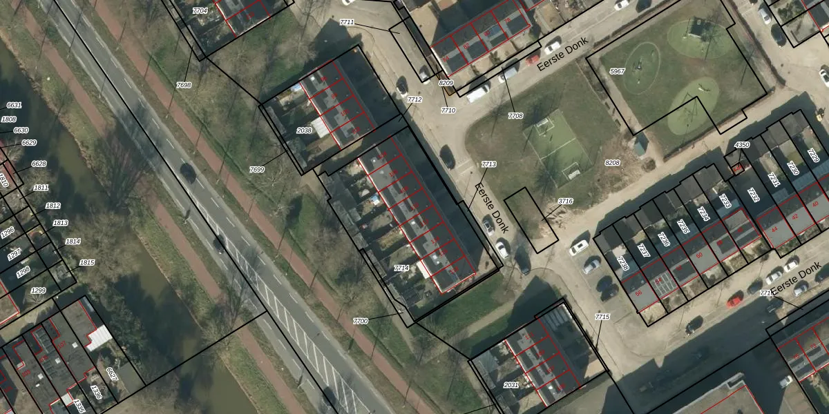Eerste Donk 110 is gelegen op kadastraal perceel HTG00O7714. Deze kadastrale aanduiding is uniek en wordt gebruikt door het Kadaster om eigendomsrechten en andere zakelijke rechten vast te leggen. Het perceel maakt onderdeel uit van de kadastrale gemeente 's-Hertogenbosch.