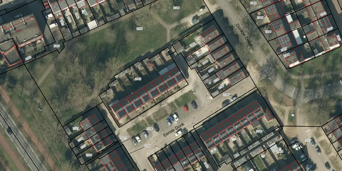 Eerste Donk 177 is gelegen op kadastraal perceel HTG00O2043. Deze kadastrale aanduiding is uniek en wordt gebruikt door het Kadaster om eigendomsrechten en andere zakelijke rechten vast te leggen. Het perceel maakt onderdeel uit van de kadastrale gemeente 's-Hertogenbosch.