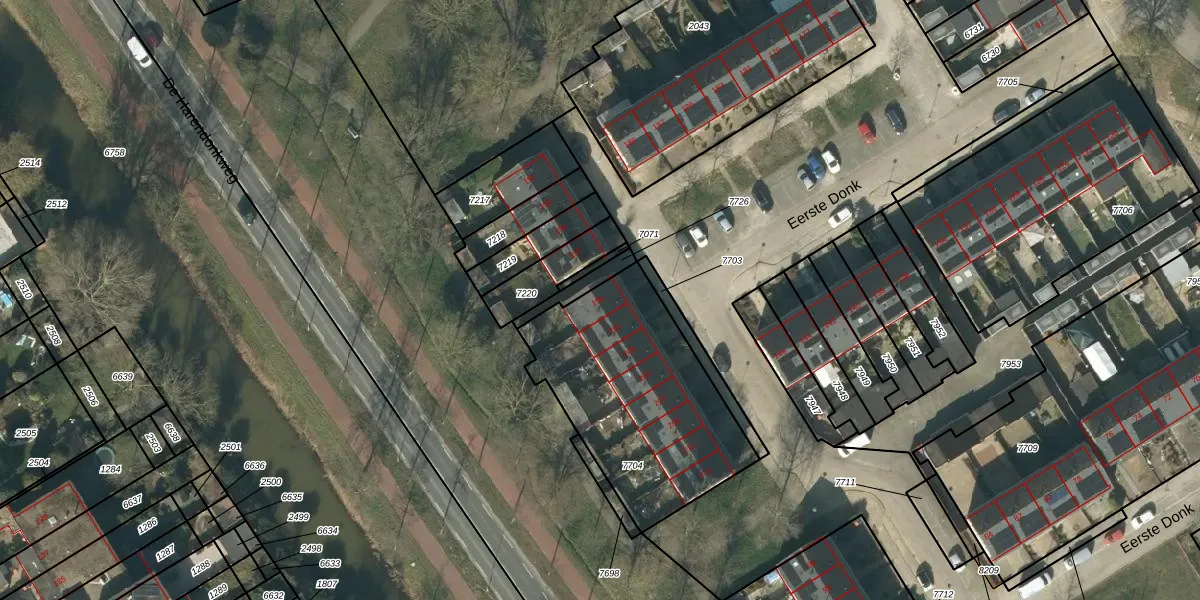 Het perceel waarop Eerste Donk 199 staat heeft een oppervlakte van 916 m². Dit is een groot perceel. De perceeloppervlakte wordt geregistreerd door het Kadaster. Gedetailleerde informatie over de maten van dit perceel kunt u vinden in het rapport Kadastrale kaart met maatvoering van Eerste Donk 199.