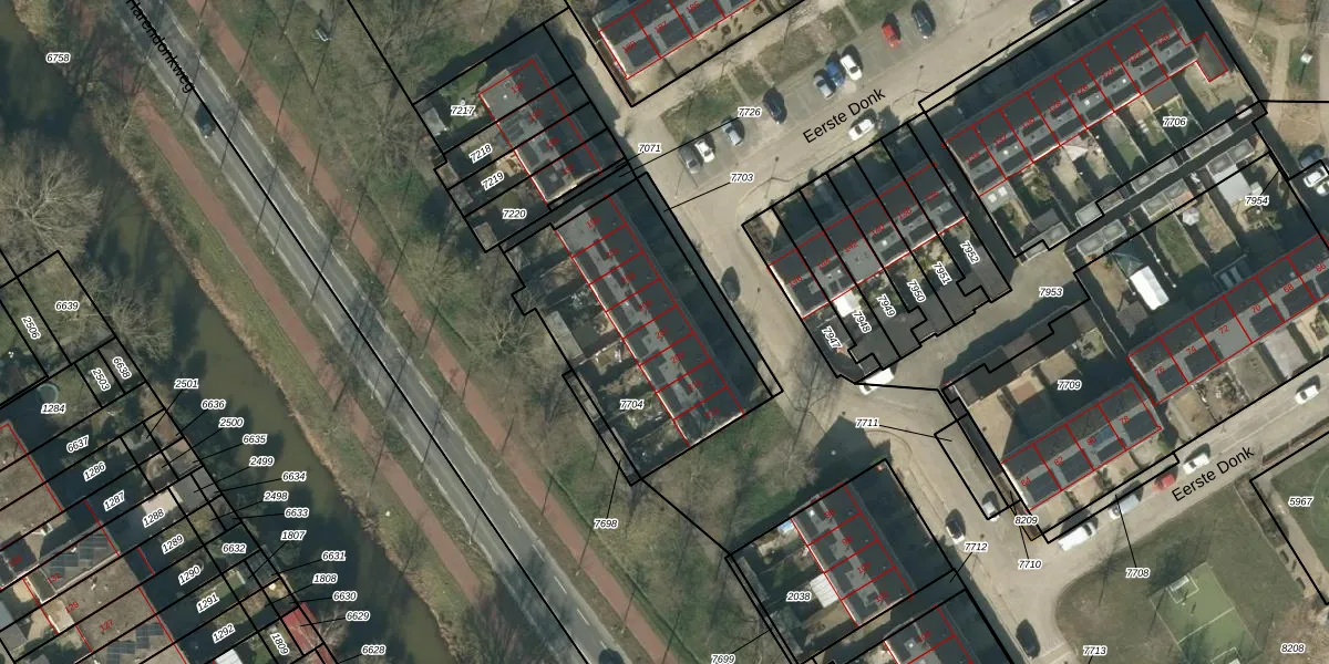 Het perceel waarop Eerste Donk 207 staat heeft een oppervlakte van 916 m². Dit is een groot perceel. De perceeloppervlakte wordt geregistreerd door het Kadaster. Gedetailleerde informatie over de maten van dit perceel kunt u vinden in het rapport Kadastrale kaart met maatvoering van Eerste Donk 207.