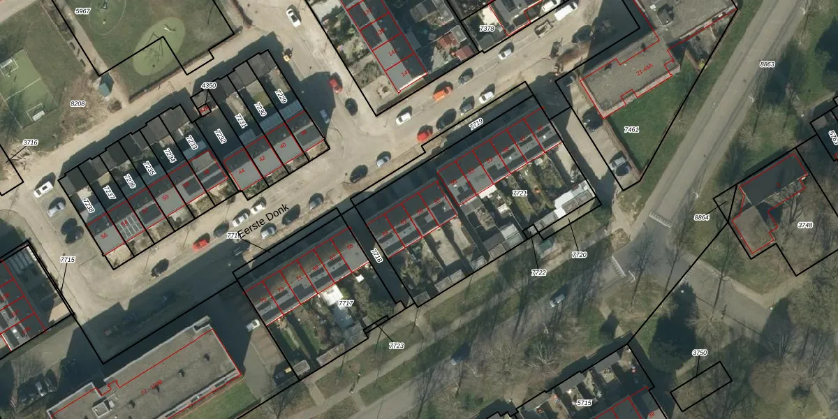 Eerste Donk 59 is gelegen op kadastraal perceel HTG00O7721. Deze kadastrale aanduiding is uniek en wordt gebruikt door het Kadaster om eigendomsrechten en andere zakelijke rechten vast te leggen. Het perceel maakt onderdeel uit van de kadastrale gemeente 's-Hertogenbosch.