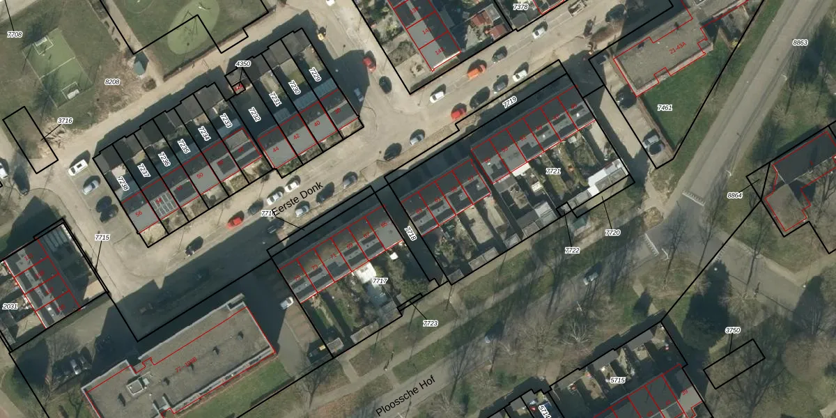 Eerste Donk 63 is gelegen op kadastraal perceel HTG00O7721. Deze kadastrale aanduiding is uniek en wordt gebruikt door het Kadaster om eigendomsrechten en andere zakelijke rechten vast te leggen. Het perceel maakt onderdeel uit van de kadastrale gemeente 's-Hertogenbosch.
