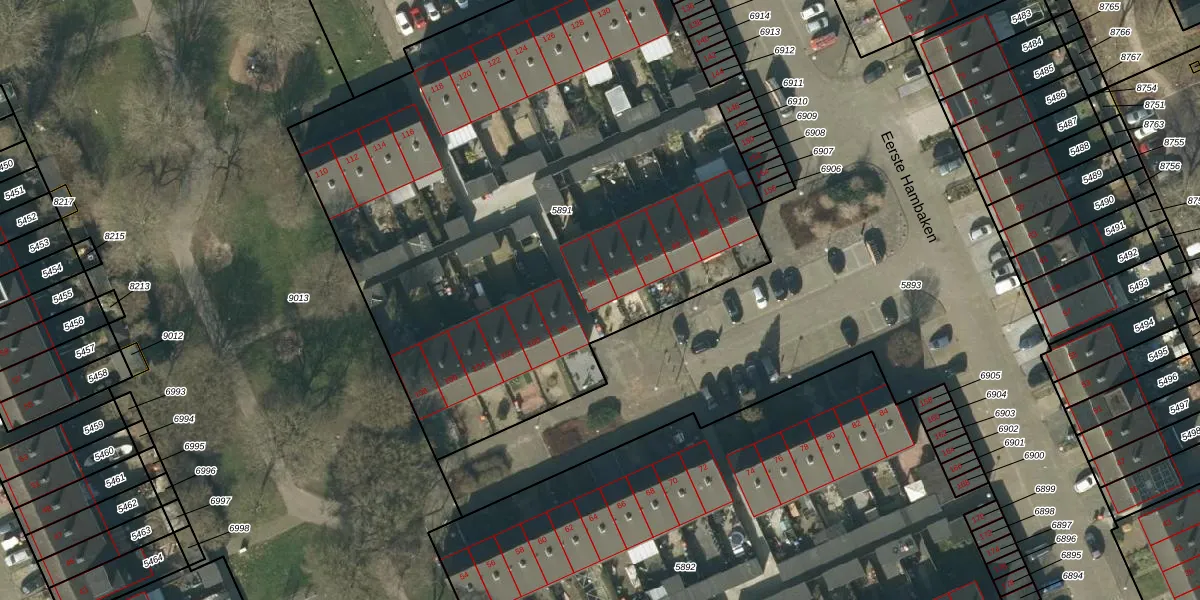 Eerste Hambaken 96 is gelegen op kadastraal perceel HTG00O5891. Deze kadastrale aanduiding is uniek en wordt gebruikt door het Kadaster om eigendomsrechten en andere zakelijke rechten vast te leggen. Het perceel maakt onderdeel uit van de kadastrale gemeente 's-Hertogenbosch.