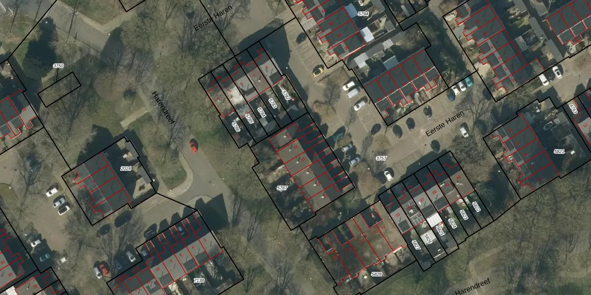 Het perceel waarop Eerste Haren 13 staat heeft een oppervlakte van 765 m². Dit is een groot perceel. De perceeloppervlakte wordt geregistreerd door het Kadaster. Gedetailleerde informatie over de maten van dit perceel kunt u vinden in het rapport Kadastrale kaart met maatvoering van Eerste Haren 13.