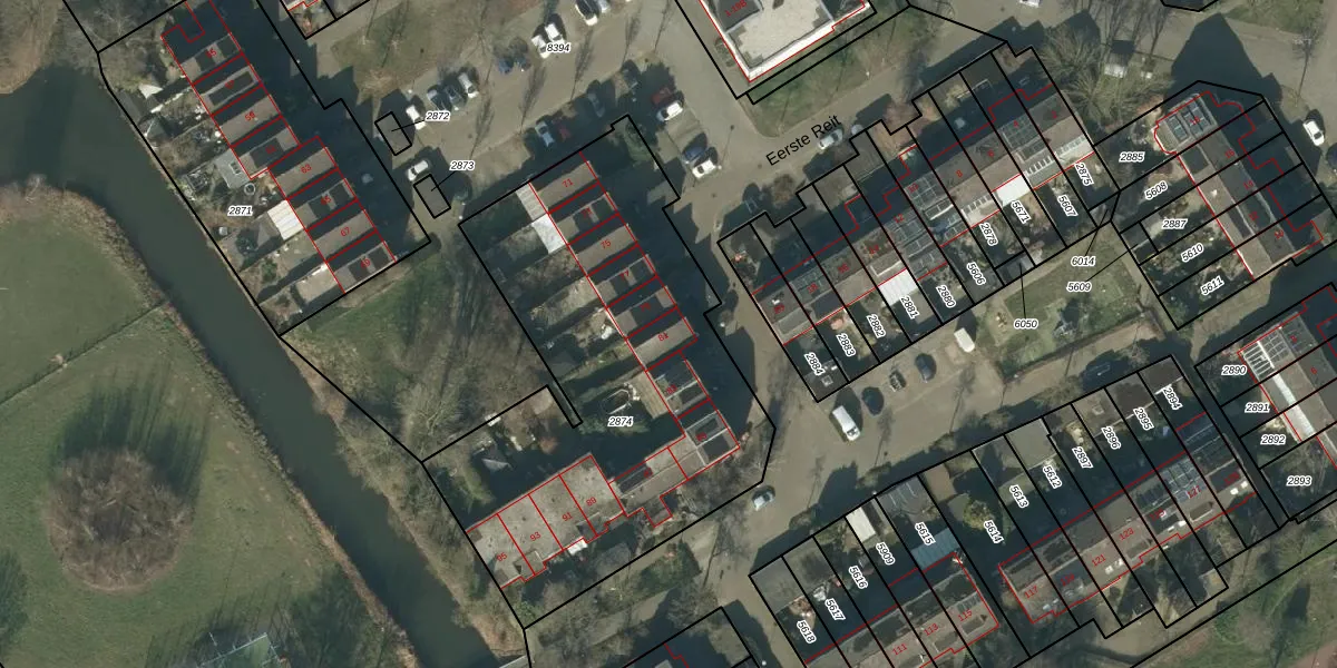 Het perceel waarop Eerste Reit 81 staat heeft een oppervlakte van 2175 m². Dit is een zeer groot perceel. De perceeloppervlakte wordt geregistreerd door het Kadaster. Gedetailleerde informatie over de maten van dit perceel kunt u vinden in het rapport Kadastrale kaart met maatvoering van Eerste Reit 81.
