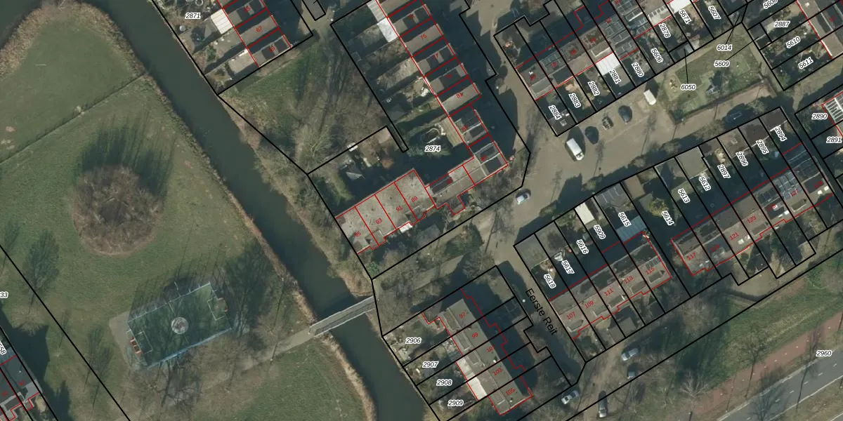 Het perceel waarop Eerste Reit 89 staat heeft een oppervlakte van 2175 m². Dit is een zeer groot perceel. De perceeloppervlakte wordt geregistreerd door het Kadaster. Gedetailleerde informatie over de maten van dit perceel kunt u vinden in het rapport Kadastrale kaart met maatvoering van Eerste Reit 89.