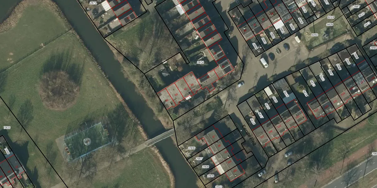 Het perceel waarop Eerste Reit 91 staat heeft een oppervlakte van 2175 m². Dit is een zeer groot perceel. De perceeloppervlakte wordt geregistreerd door het Kadaster. Gedetailleerde informatie over de maten van dit perceel kunt u vinden in het rapport Kadastrale kaart met maatvoering van Eerste Reit 91.