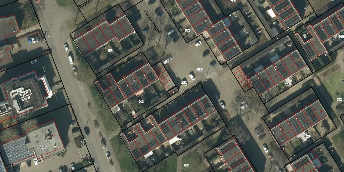 Het perceel waarop Eerste Slagen 21 staat heeft een oppervlakte van 1158 m². Dit is een zeer groot perceel. De perceeloppervlakte wordt geregistreerd door het Kadaster. Gedetailleerde informatie over de maten van dit perceel kunt u vinden in het rapport Kadastrale kaart met maatvoering van Eerste Slagen 21.