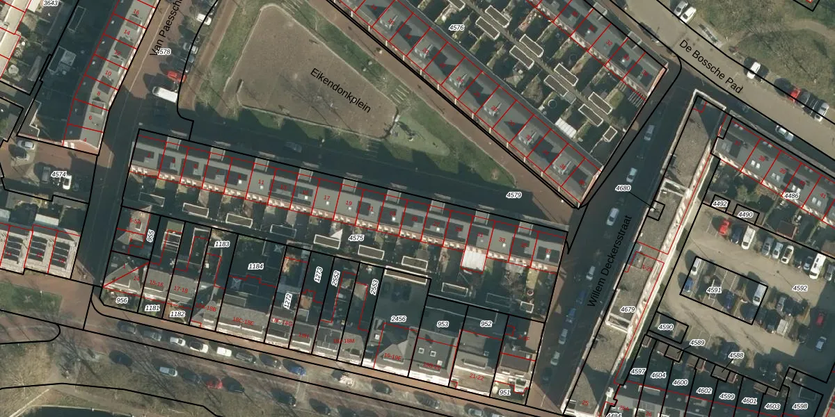 Eikendonkplein 25 is gelegen op kadastraal perceel HTG00C4575. Deze kadastrale aanduiding is uniek en wordt gebruikt door het Kadaster om eigendomsrechten en andere zakelijke rechten vast te leggen. Het perceel maakt onderdeel uit van de kadastrale gemeente 's-Hertogenbosch.