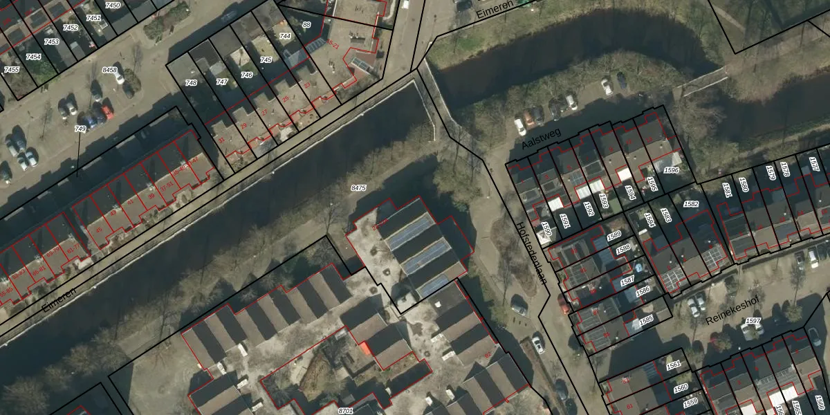 Gebruik de zoekbalk of klik op een perceel voor informatie over de adressen binnen dit perceel.