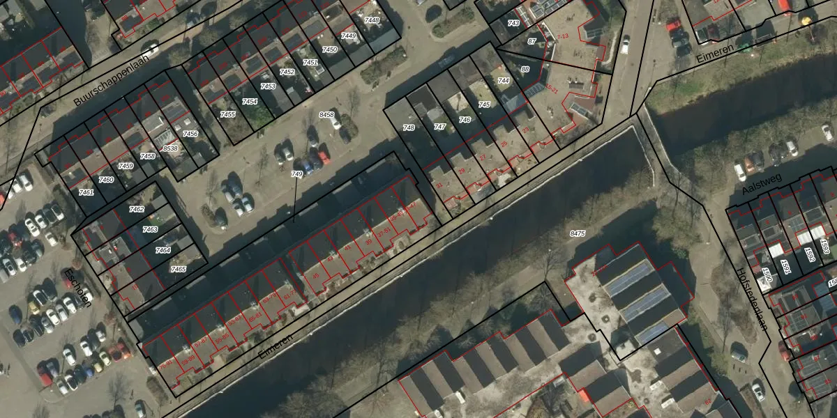 Eimeren 33 is gelegen op kadastraal perceel HTG00T749. Deze kadastrale aanduiding is uniek en wordt gebruikt door het Kadaster om eigendomsrechten en andere zakelijke rechten vast te leggen. Het perceel maakt onderdeel uit van de kadastrale gemeente 's-Hertogenbosch.