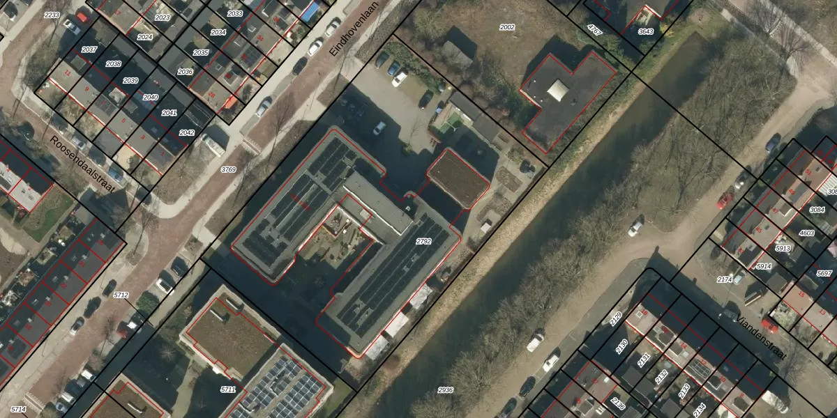 Het perceel waarop Eindhovenlaan 121-H staat heeft een oppervlakte van 3500 m². Dit is een zeer groot perceel. De perceeloppervlakte wordt geregistreerd door het Kadaster. Gedetailleerde informatie over de maten van dit perceel kunt u vinden in het rapport Kadastrale kaart met maatvoering van Eindhovenlaan 121-H.