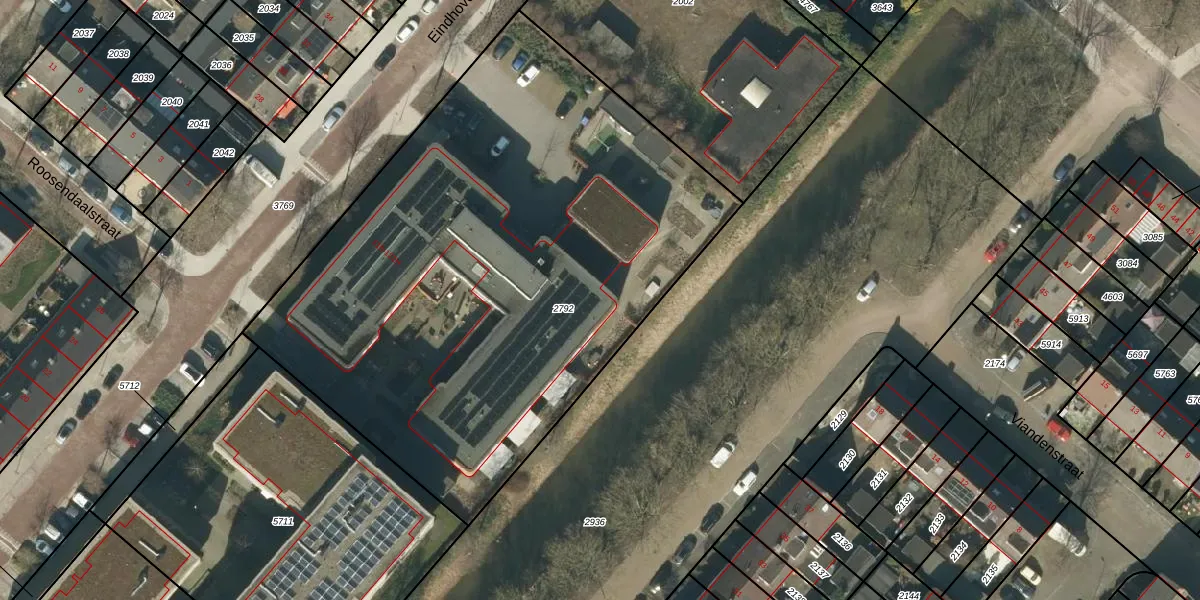Het perceel waarop Eindhovenlaan 121-G staat heeft een oppervlakte van 3500 m². Dit is een zeer groot perceel. De perceeloppervlakte wordt geregistreerd door het Kadaster. Gedetailleerde informatie over de maten van dit perceel kunt u vinden in het rapport Kadastrale kaart met maatvoering van Eindhovenlaan 121-G.