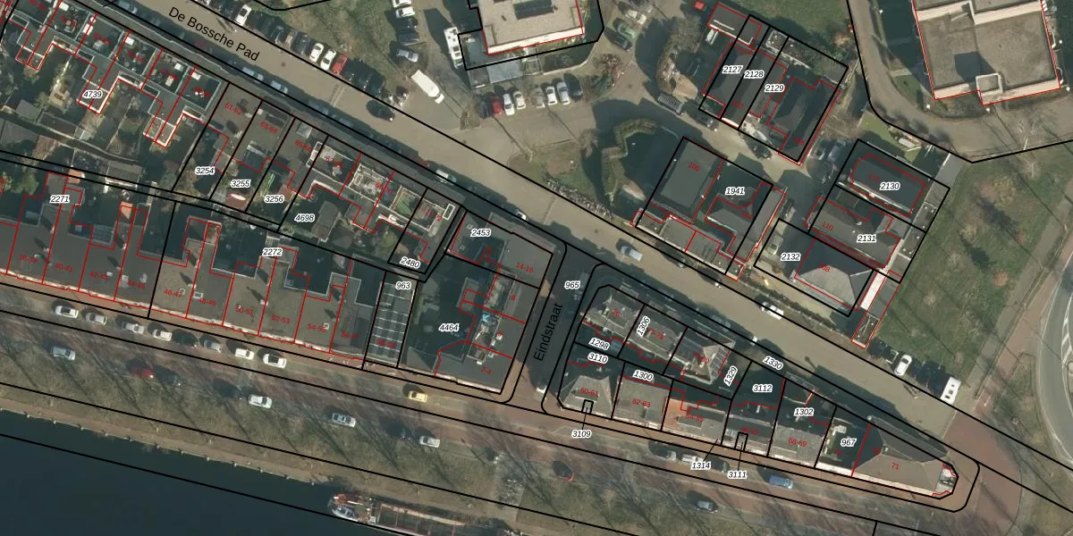 Eindstraat 14 is gelegen op kadastraal perceel HTG00C2453. Deze kadastrale aanduiding is uniek en wordt gebruikt door het Kadaster om eigendomsrechten en andere zakelijke rechten vast te leggen. Het perceel maakt onderdeel uit van de kadastrale gemeente 's-Hertogenbosch.