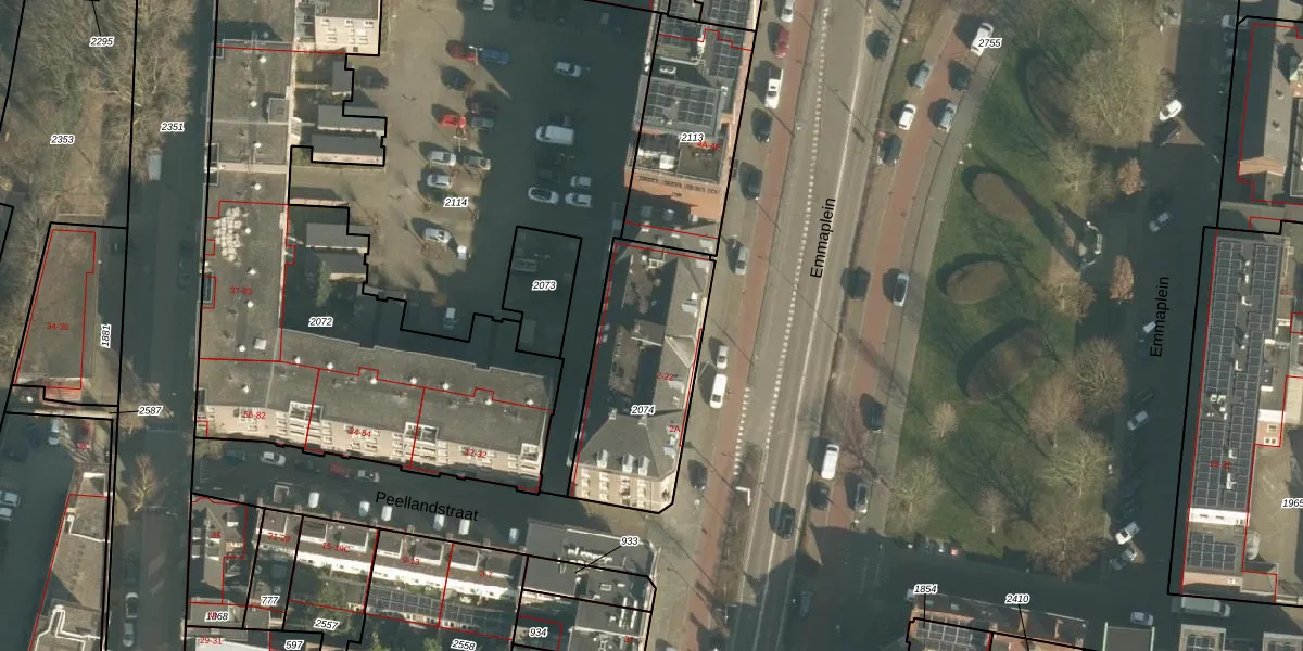 Het perceel waarop Emmaplein 2-N staat heeft een oppervlakte van 690 m². Dit is een groot perceel. De perceeloppervlakte wordt geregistreerd door het Kadaster. Gedetailleerde informatie over de maten van dit perceel kunt u vinden in het rapport Kadastrale kaart met maatvoering van Emmaplein 2-N.