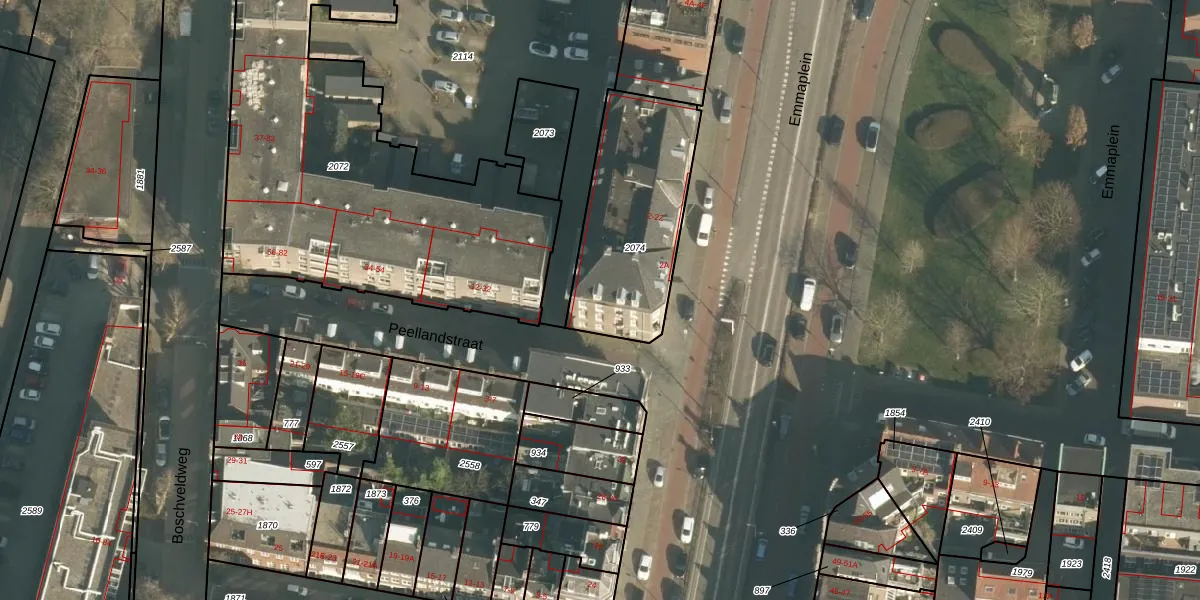 Het perceel waarop Emmaplein 2-R staat heeft een oppervlakte van 690 m². Dit is een groot perceel. De perceeloppervlakte wordt geregistreerd door het Kadaster. Gedetailleerde informatie over de maten van dit perceel kunt u vinden in het rapport Kadastrale kaart met maatvoering van Emmaplein 2-R.