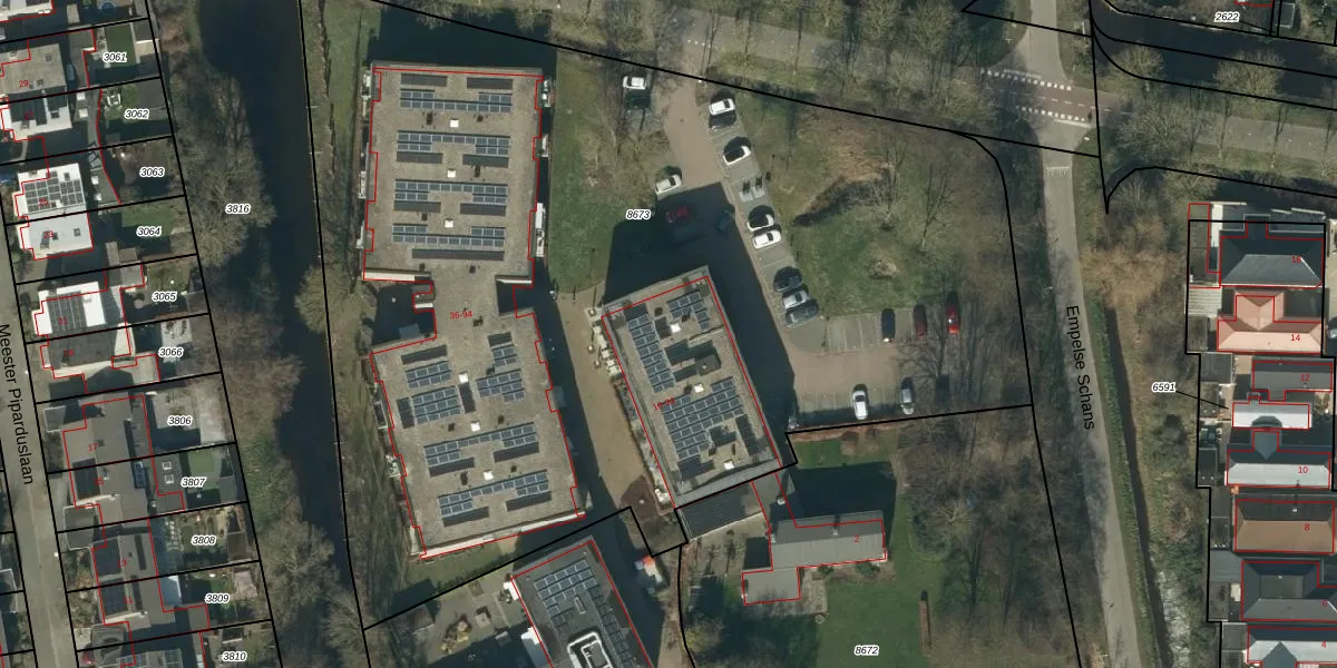 Het perceel waarop Empelse Schans 22 staat heeft een oppervlakte van 6799 m². Dit is een zeer groot perceel. De perceeloppervlakte wordt geregistreerd door het Kadaster. Gedetailleerde informatie over de maten van dit perceel kunt u vinden in het rapport Kadastrale kaart met maatvoering van Empelse Schans 22.