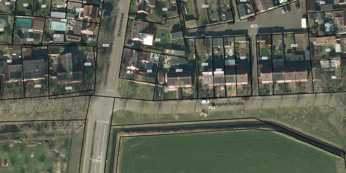 Het perceel waarop Engeler Schans 2 staat heeft een oppervlakte van 644 m². Dit is een groot perceel. De perceeloppervlakte wordt geregistreerd door het Kadaster. Gedetailleerde informatie over de maten van dit perceel kunt u vinden in het rapport Kadastrale kaart met maatvoering van Engeler Schans 2.