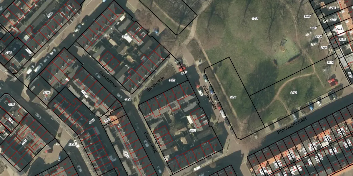 Het perceel waarop Essenplein 11 staat heeft een oppervlakte van 1396 m². Dit is een zeer groot perceel. De perceeloppervlakte wordt geregistreerd door het Kadaster. Gedetailleerde informatie over de maten van dit perceel kunt u vinden in het rapport Kadastrale kaart met maatvoering van Essenplein 11.